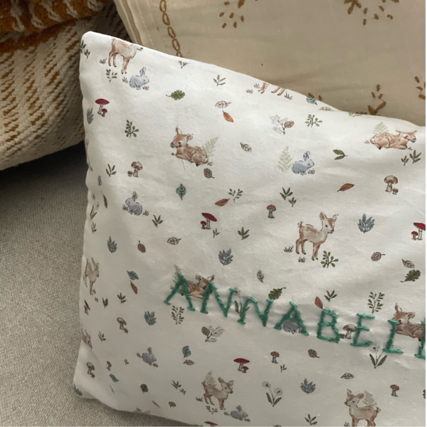 Tous nos coussins sont brodés par mes soins. Personnalisez votre coussin en quelques secondes grâce à notre outil de personnalisation en ligne.
